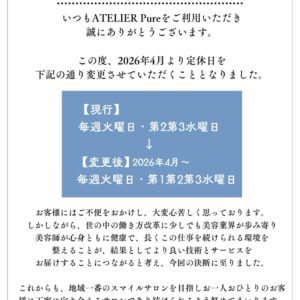 アトリエピュアからのお知らせを更新中♪