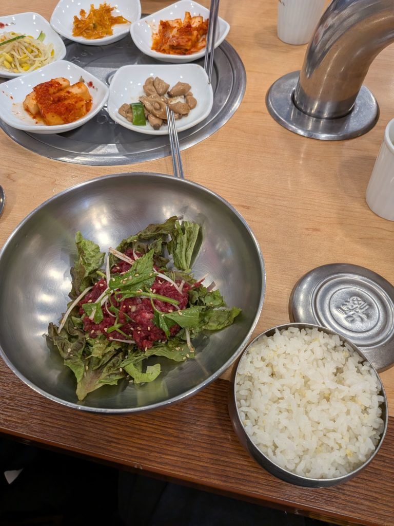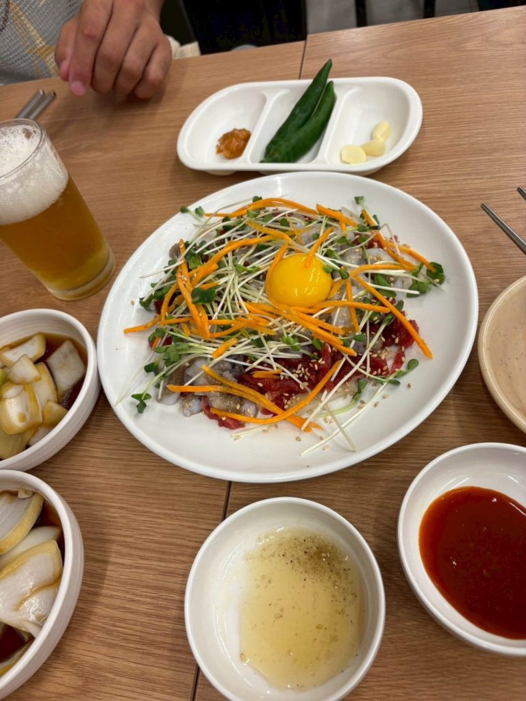 タクシーで江南に向かい美味しいユッケビビンバを食べに行きました