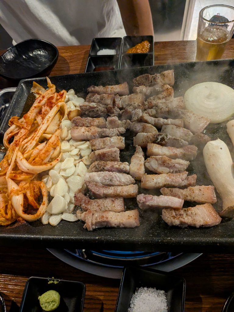 夜はサムギョプサルを食べに行きました
