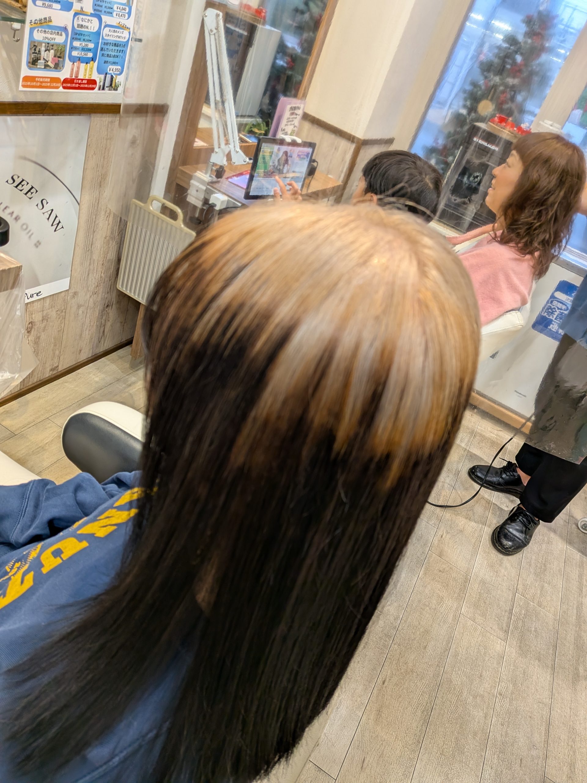 ルーツカラー 2025.12.24Mayumi Tweet Share +1 Hatena Pocket RSS feedly Pin it 今日はルーツカラーをしたお客様を紹介していきます! ルーツカラーとは、髪の根元(ルーツ)と毛先で異なる色を入れるヘアカラーのデザインのことです。 海外では「シャドールーツ」などとも呼ばれ、根元と毛先のコントラストを楽しむスタイルとして人気があります! あえて根元をブリーチして明るい色や派手なネオンカラーにし、毛先を暗く(または別の色に)するスタイルです。 とっても似合ってて可愛いですね Tweet Share +1 Hatena Pocket RSS feedly Pin it 投稿者: PureMayumiコメント: 0 イルミネーション 完成!