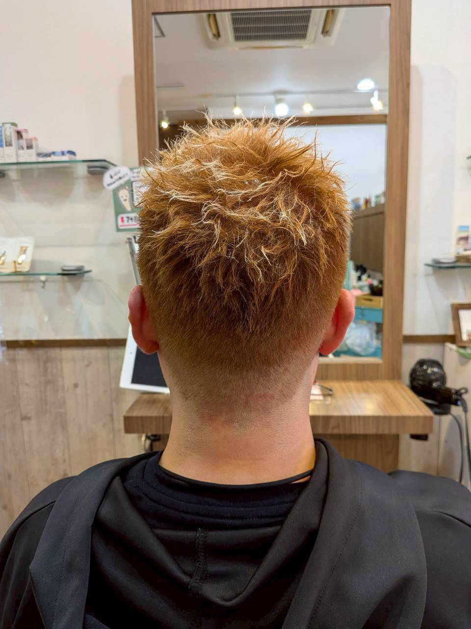 横・後ろはすっきりフェード気味に刈り上げ、清潔感とメリハリをプラス。
